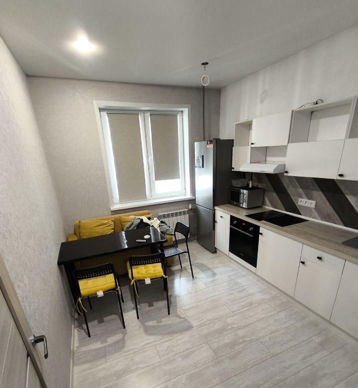 сдаётся уютная однушка общей площадью 39.4 кв. м на третьем этаже монолитного дома 2021 года постройки. квартира расположена в современном 22этажном жилом комплексе с развитой инфраструктурой. высота потолков составляет 2.7 метра, что добавляет ощущения простора. из окон открывается вид на тихий двор, где можно насладиться тишиной и спокойствием.в квартире сделан косметический ремонт. просторная кухня площадью 12 кв. м оборудована всей необходимой мебелью и техникой, включая холодильник и стиральную машину. в комнате также имеется необходимая мебель для комфортного проживания. санузел совмещённый, оснащён ванной. приятным дополнением является наличие лоджии, где можно обустроить зону отдыха или рабочее место.условия аренды договор аренды заключается напрямую с собственником, без комиссии. предусмотрен залог в размере 10тысяч .