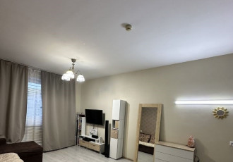 однокомнатная квартира 33 м² в тихом районе с видом на детсад, балкон. рядом остановка общественного транспорта автобус 9,85. 400 метров до гипермаркета алея. 1 взрослый собственник.