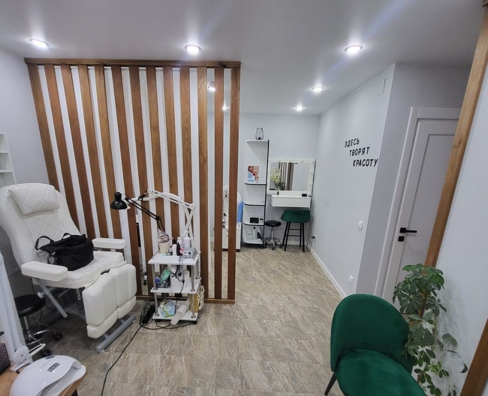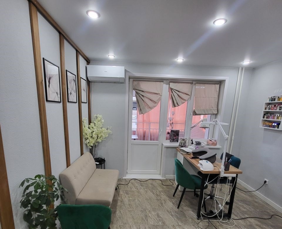 продам красивую квартиру на мясокомбинате. в данный момент в ней расположен салон красоты с евроремонтом . статус помещения квартира по документам, 38,2м2 без учёта площади лоджии. двери массив дереваиталия, пол керамогранитиспания, натяжные потолки сатин зонированным освещением. салон полностью оборудован для бизнеса, есть возможность приоюрести объект с оборудованием. в прихожей остаётся шкаф, скамья для обуви. зал 1 педикюрное кресло. 2 стола для маникюра и наращивания, профессиональные вытяжки, шкафы и этажерки для лаков, кондиционер, сухожар, диванчик для гостей,кресла, оборудованное место для бровиста и визажиста,стул для визажа, массажная кушетка, световая безтеневая лампа, шкафы, тумбы, стол, жалюзи, шторы, кухонный гарнитур, духовой шкаф, варочная панель, микроволновка, холодильник, чайник, посуда . камера видео наблюдения. ванная комната в кафеле, мойдодыр, зеркало. чисьая продажа. 1 взрослый собственник.