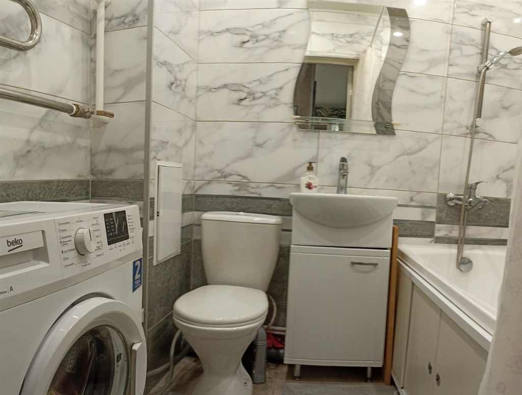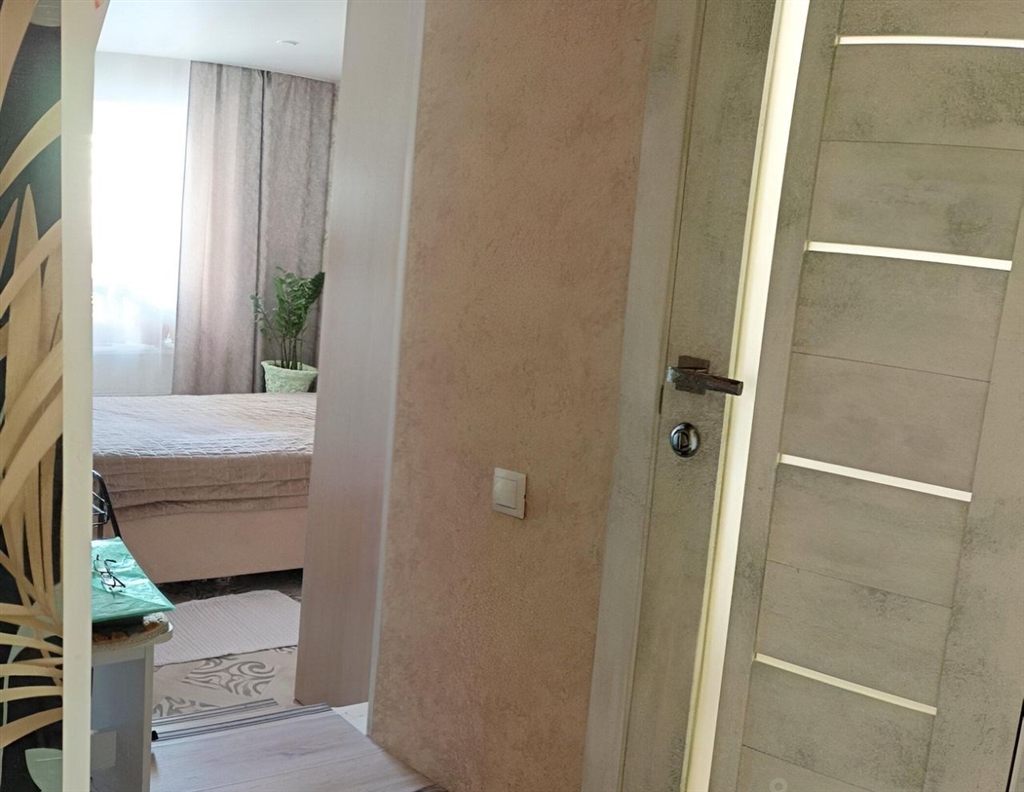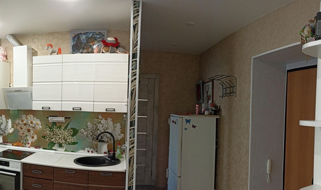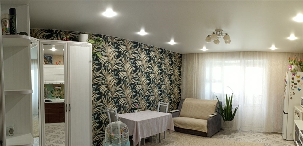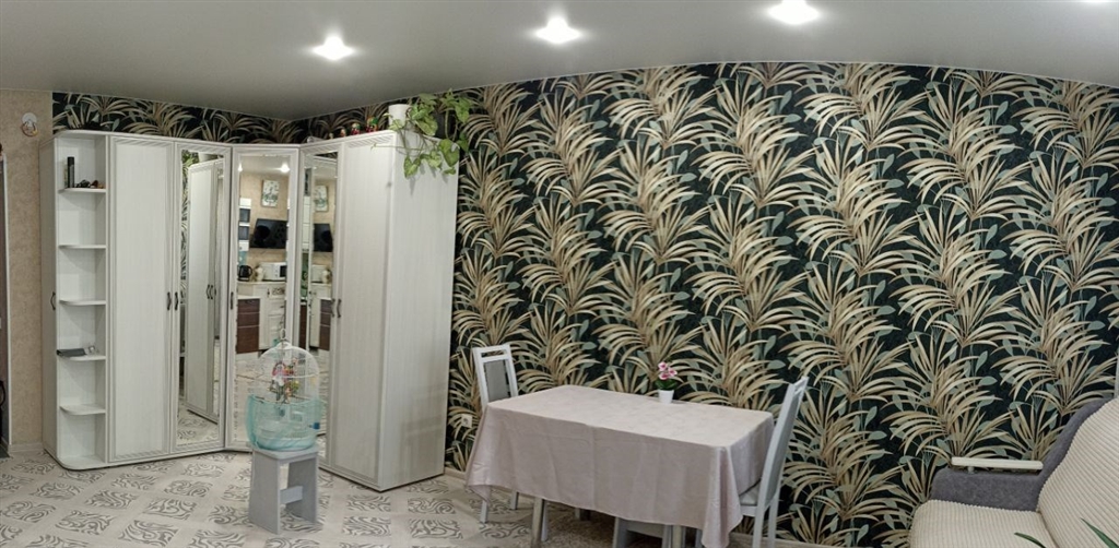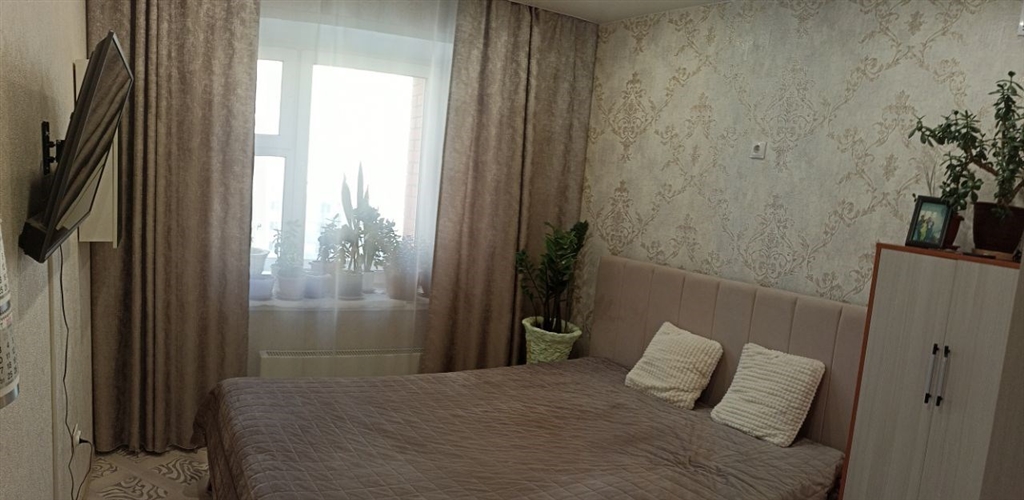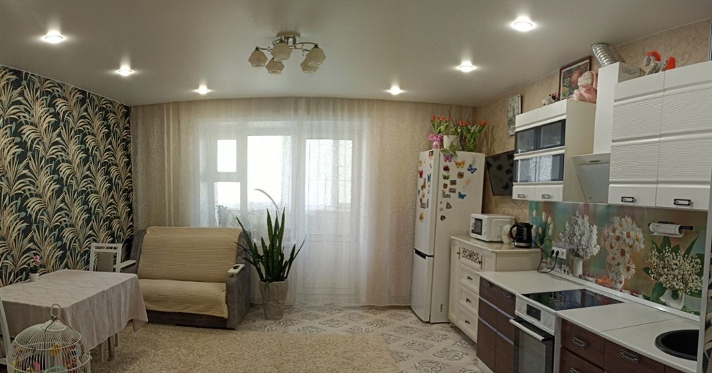 продается 1 комнатная, перепланирована в евродвушку спальня 10,4, гостиная кухня 24 м2, сделан хороший ремонт, все стены и полы выровнены, потолки натяжные, санузел в кафеле. остается кухонный гарнитур, встроенный шкаф в спальне, люстры и светильники. балкон остеклен и утеплен, рамы раздвижные очень удобно открываются, стены и пол балкона отделаны кафелем и ламинатом, хороший шкаф для хранения с зеркальными дверьми на балконе. квартира в ипотеке сб, остаток небольшой.