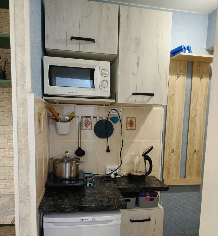 продается уютная однокомнатная квартира с косметическим ремонтом. общая площадь составляет 13.6 кв. м. квартира находится на 5 этаже 5этажного панельного дома, построенного в 1970 году. высота потолков составляет 2.4 метра, окна выходят во двор, зимой во дворе заливают каток.дом находится в нормальном состоянии, летом производили капремонт крыши.район с хорошо развитой инфраструктурой.потолки натяжные, окно пластиковое , зимой тепло. вся мебель на фото остаётся, состояние заезжай и живи.квартира продается от собственника, долгов и обременений нет, прописанных нет, в собственности 2,5 года.