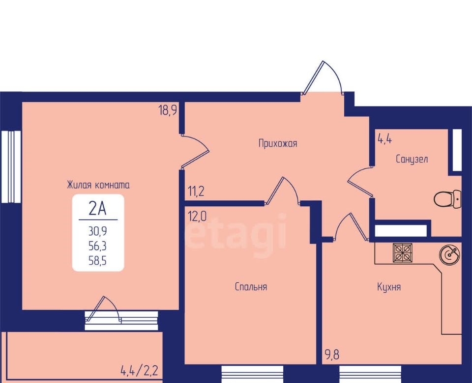 58 м²