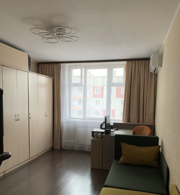 продается однокомнатная квартира, планировка которой, позволяет использовать её как полноценную двушку. окна выходят на солнечную сторону. есть кондиционер. квартира светлая и очень теплая. полы выровнены, постелен ламинат. батареи заменены. просторная ванная комната 6 квадратов. кухня с лоджией. лоджия застеклена. входная сейфовая дверь. соседи со всех сторон. видеонаблюдение. грузовой лифт. в шаговой доступности три детских сада, школа, поликлиника, круглосуточная лента, аллея, магнит, ярче, магазин вираж. наземные и подземные парковки. квартира без обременений. чистая продажа. продает собственник.